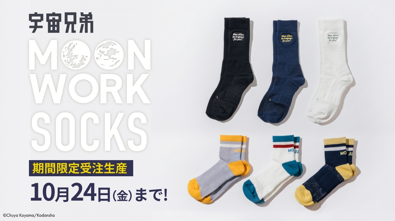挑戦を続けるあなたに贈る、宇宙兄弟の世界観と一流メーカーの機能性を足元で楽しめる特別なソックスです!