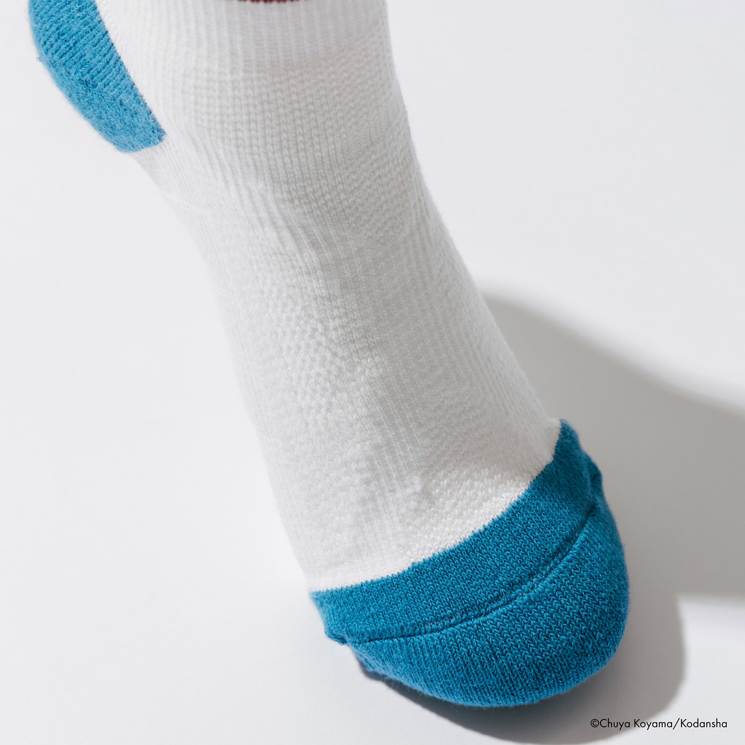 スポーツタイプの方はOFFの時に楽しく履いてもらえるように、作中の楽しいシーンだったり、軽やかな一歩が描かれた部分から着想しました。