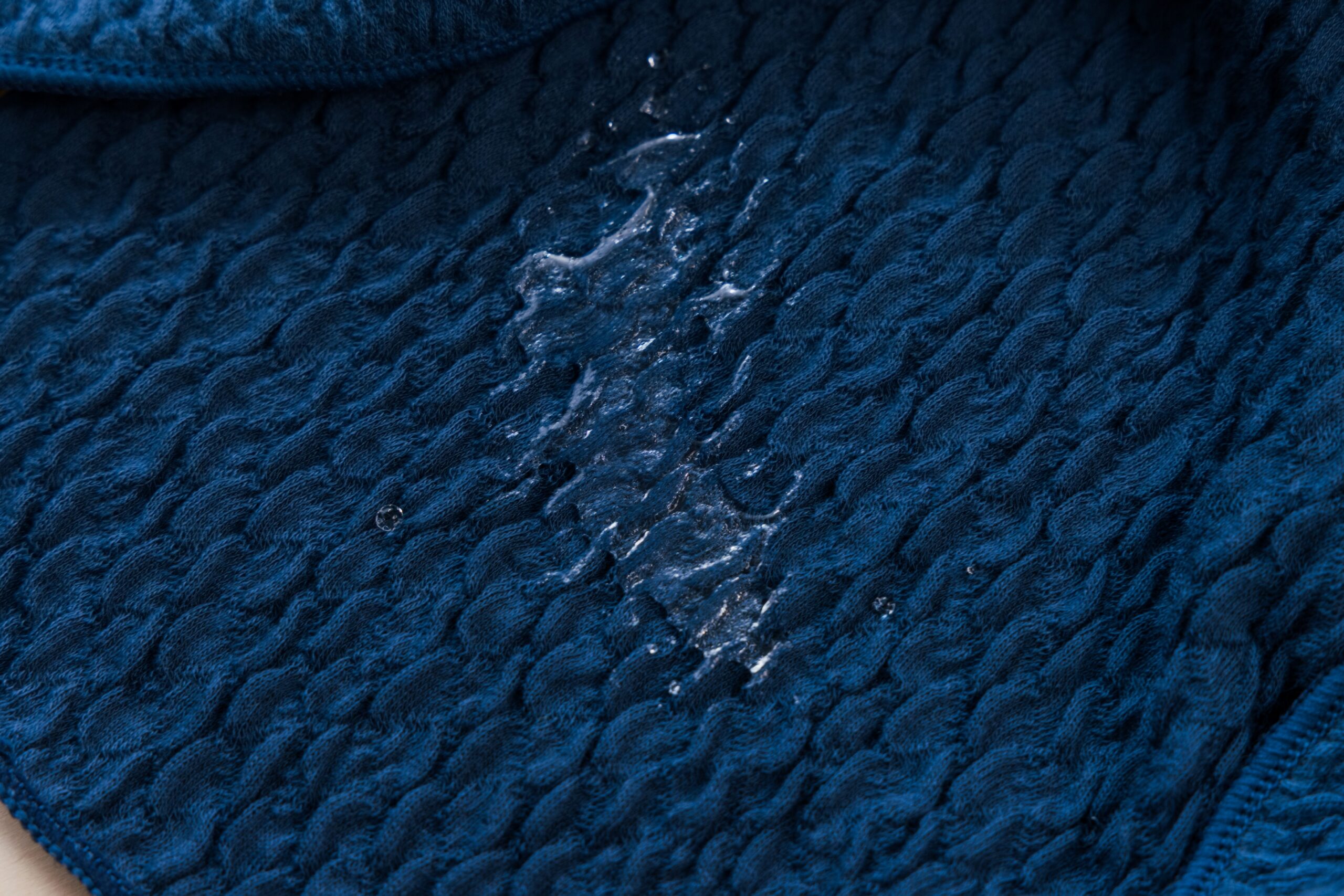 小林:実際に内側から少量の水をかけてみると、水分がどんどん外に排出されていって、内側はすぐに乾いていくのが分かると思います。