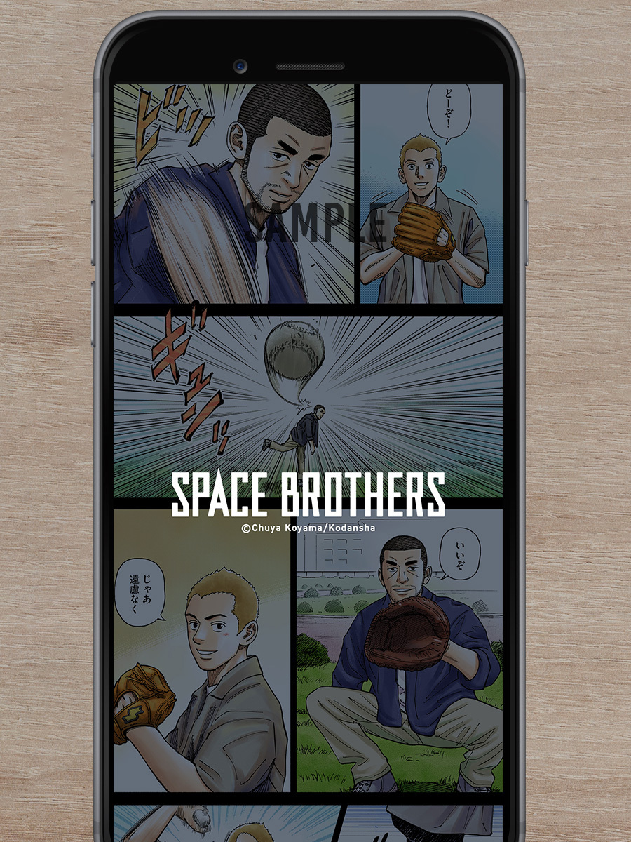 宇宙兄弟公式LINEでは、吾妻が久々に登場したビリヤードのシーンの待受画像をプレゼントします!